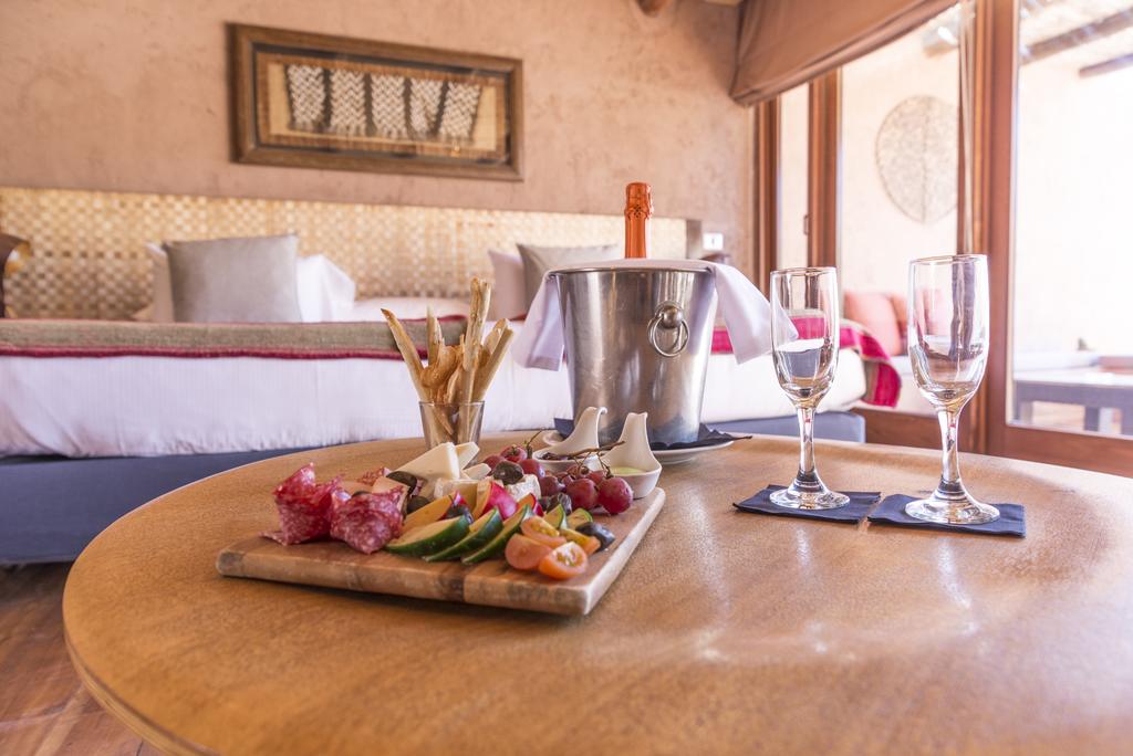 A decoração dos quartos consegue mesclar a simplicidade do deserto com alguns toques mais requintados.