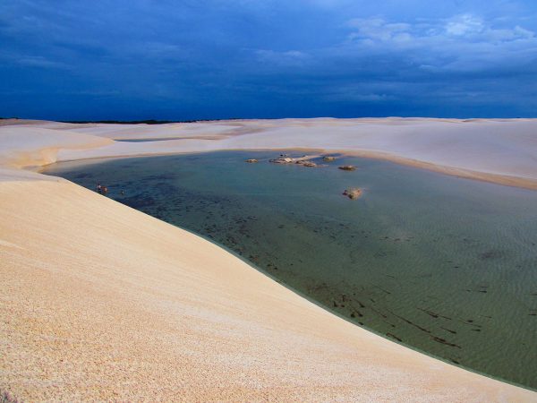 É possível apreciar o pôr do sol único dos lençóis nessa lagoa ou no topo da duna. O guia avaliará as condições para que seja possível aproveitar da melhor forma possível.